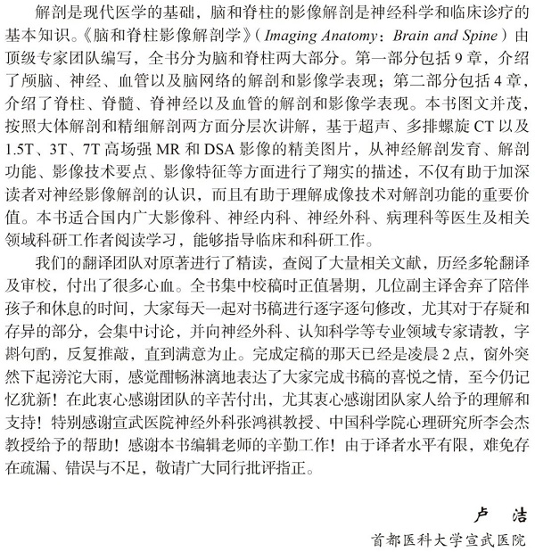 国际著名神经影像学专家Osborn及该领域知名专家共同主编,首都医科大学宣武医院卢洁教授团队精心翻译的重磅新著《脑和脊柱影像解剖学》(Imaging Anatomy: Brain and Spine)由北京大学医学出版社出版。