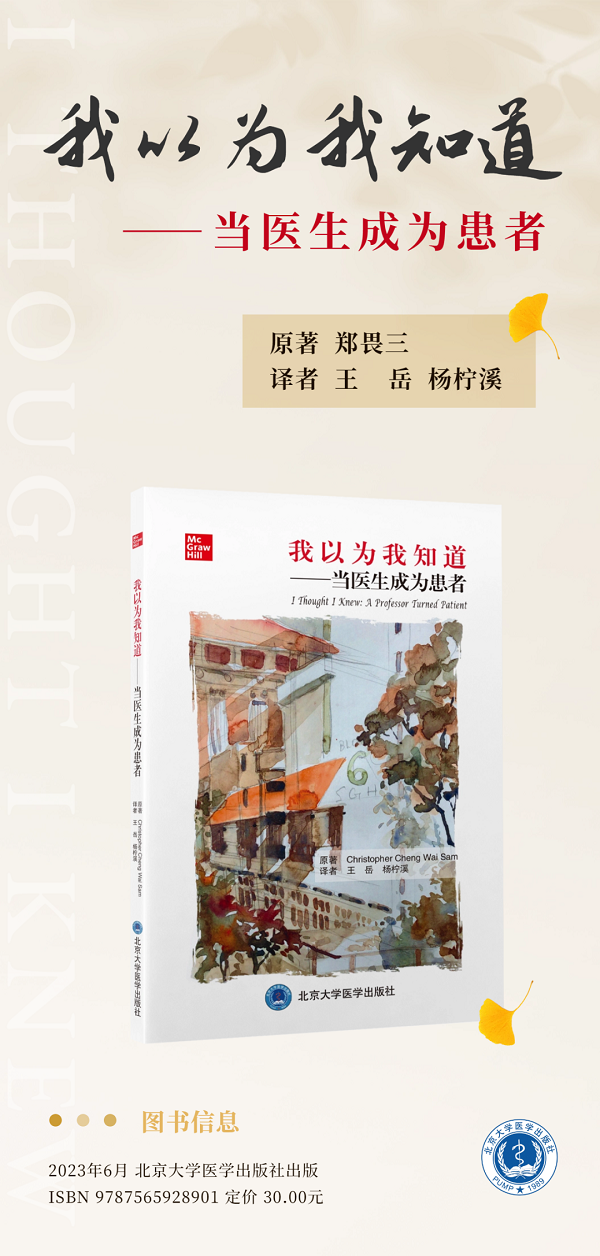 本书的作者郑畏三教授是前列腺癌领域的权威专家,同时也是一位癌症幸存者。在这本书中,他讲述了自己的亲身经历,记录了从患癌到治愈的心路历程,从“我以为我知道”,到透过医生/患者的双视角来重新审视疾病、医疗、健康、医患关系等重要课题。