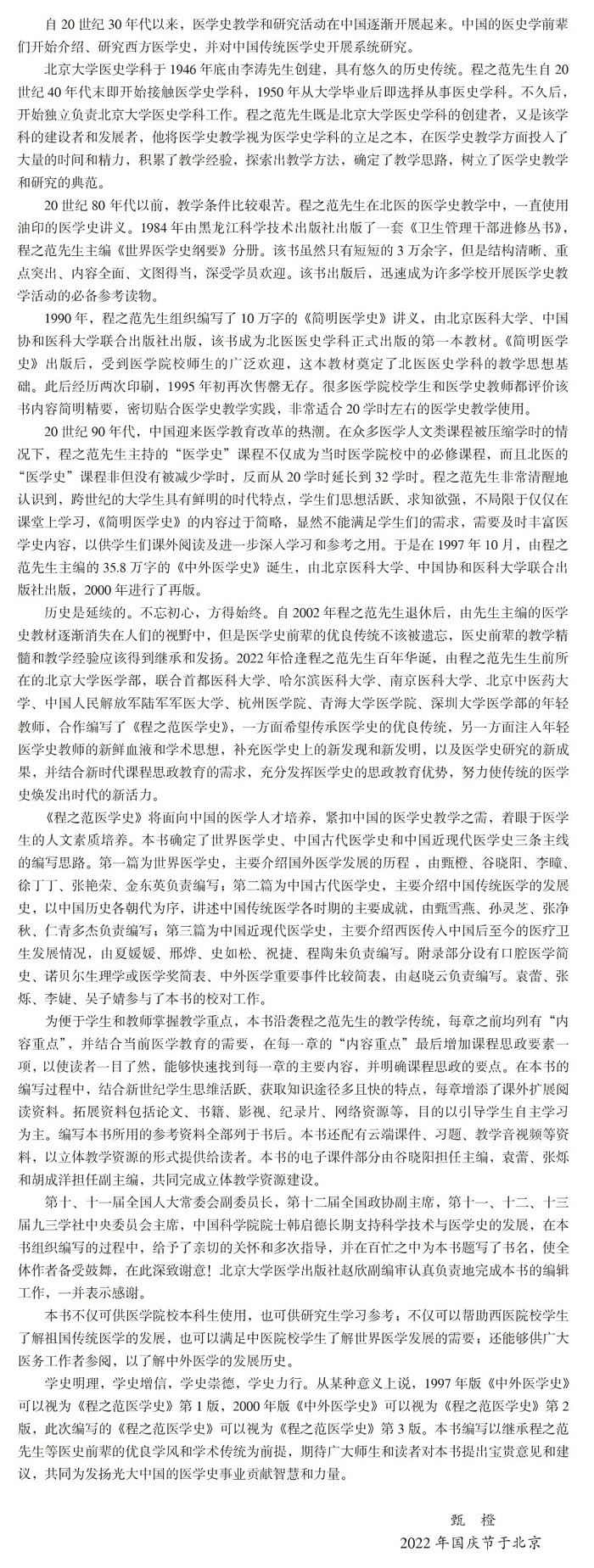 《程之范医学史》面向中国的医学人才培养,紧扣中国的医学史教学之需,着眼于医学生的人文素质提升。本书确定了世界医学史、中国传统医学史和中国近现代医学史三条主线的编写思路。