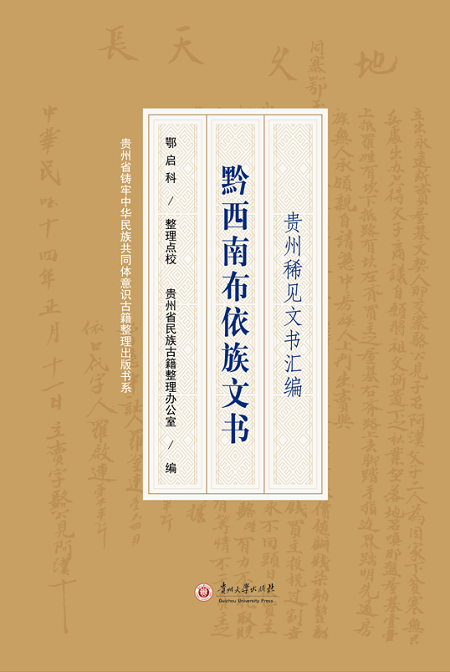《黔西南布依族文书》是“贵州省铸牢中华民族共同体意识古籍整理出版书系”之一,其所展示的文书,产生地主要集中在黔西南州望谟县。望谟县是全国布依族人口最多的县,布依族文化保存较为完整。作者多次深入望谟县搜集近百份布依族契约文书,最后整理点校契约文书共80余份。文书内容十分丰富,有买卖契约、典当契约、分析契约、身份契约、嗣续契约等类别,归户性清晰,具有鲜明的地域特色和民族特色。本书的出版体现了多民族交流交往交融的历史事实,体现了民族文化交流的历史自觉,体现了布依族诚实守信的优良传统。