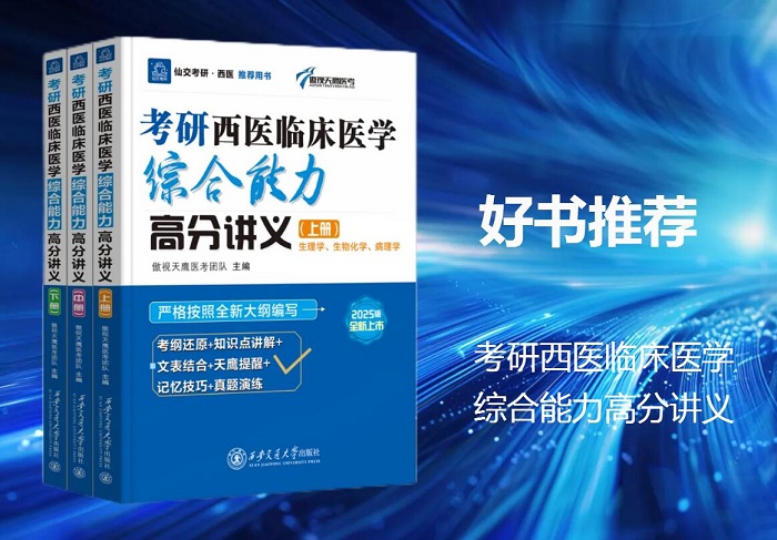近日,西安交通大学出版社联合傲视天鹰医考团队,重磅推出《考研西医临床医学综合能力高分讲义》,本书是专门针对西医考研的辅导图书,共分为上、中、下三册,其中上册包括生理学、生物化学、病理学,中册包括内科学,下册包括外科学、临床医学人文精神,适合广大西医考研学子参考使用。