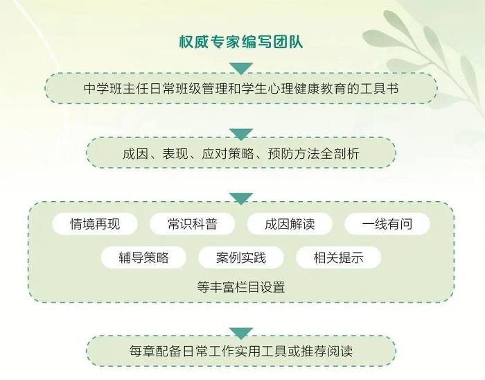 本书编者既包括掌握扎实的理论知识和前沿研究进展的国内心理学领域权威专家,也包括有着丰富一线班主任和心理健康教育经验的教师,这些一线教师真切地了解班主任在实际工作中的需要和渴求。我们期待通过本书,进一步提升班主任的专业素养和职业胜任力,为促进我国中学生的心理健康贡献力量!