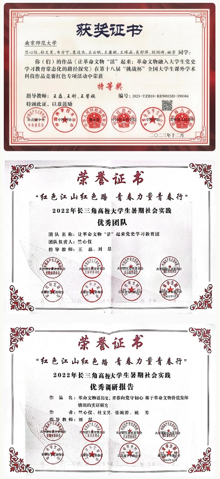 本书是全国大学生党史学习教育的重要载体。2023年12月以本书为主要讲解内容的作品在第十八届“挑战杯”全国大学生课外学术科技作品竞赛红色专项活动中荣获特等奖。2022年12月以本书为主要讲解内容的项目获得2022年长三角高校大学生暑期社会实践优秀调研报告,同时以本书为主要讲解内容的让革命文物“活”起来党史学习教育团获得2022年长三角高校大学生暑期社会实践优秀团队。另以本书等为基础开发微课,所推出《百件革命文物青年说》系列视频在《学习强国》播放点击170余万次。