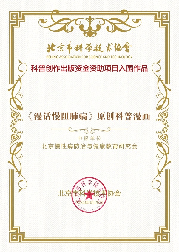 由北京市科学技术协会组织的2024年科普创作出版资金资助项目评审已于日前结束,共有30部出版类图书项目获2024年北京市科学技术协会科普创作资金资助项目,30部出版类图书项目获入围作品资格,并遴选出20个优秀选题类项目纳入资助选题库。由中国工程院王辰院士作序,北医三院陈亚红教授主编,北京大学医学出版社出版的《漫话慢阻肺病》荣获入围作品资格。