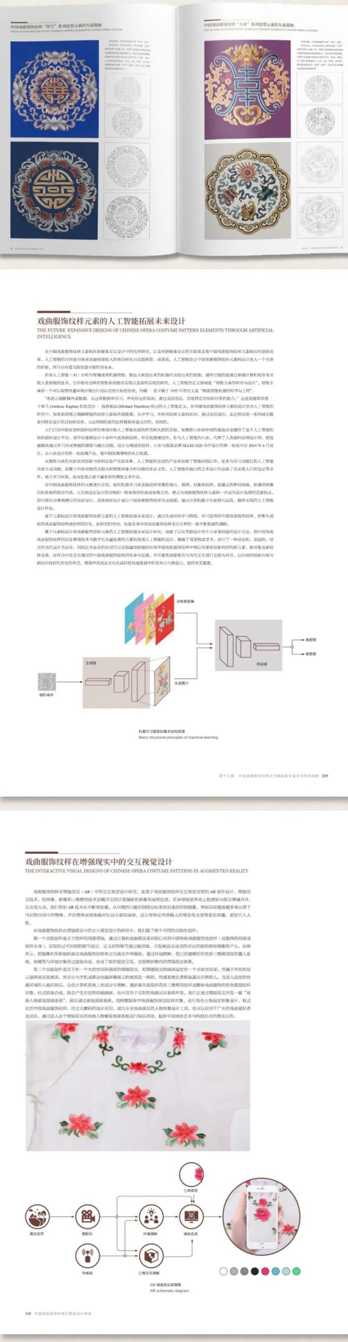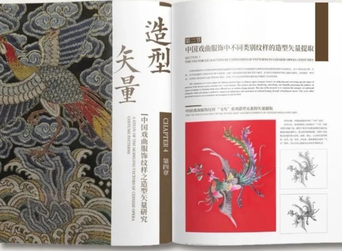 10大中国戏曲服饰纹样基本色,12个角色特色服饰纹样,30余种戏曲服饰样式的纹样生成,100余种中国戏曲传统纹样当代设计实例。