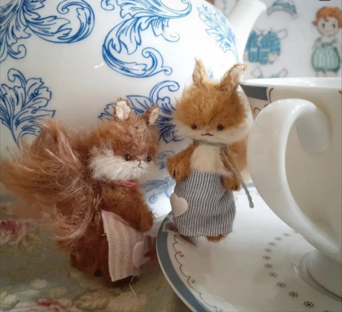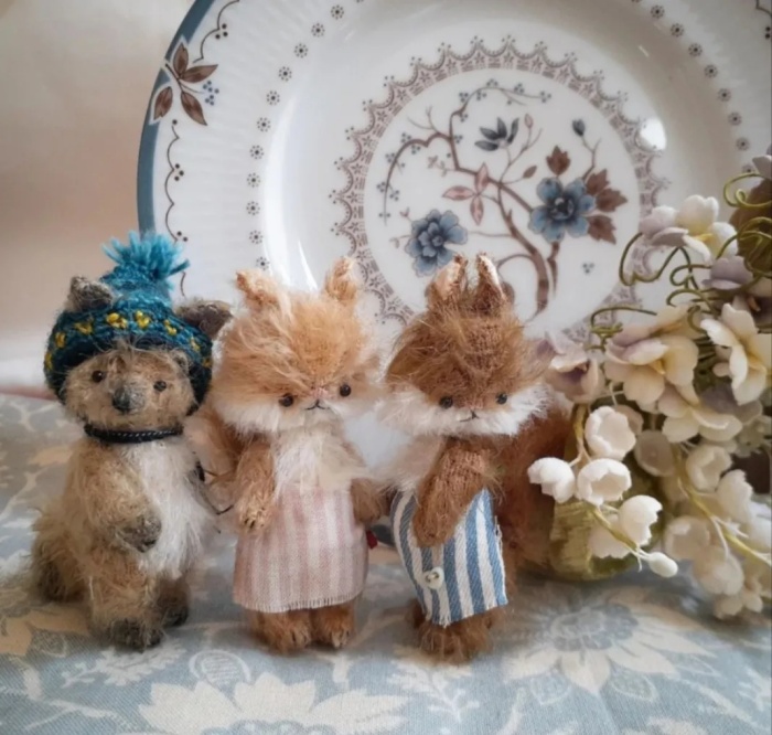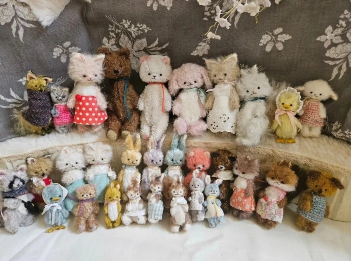 [日]森田宽子 在英国生活期间,森田宽子对泰迪熊产生了浓厚的兴趣。回到日本后,她从2013年开始了迷你布偶的自学制作之旅。她擅长运用手工染色技术,并在创作中巧妙地使用复古布料和自制的玻璃眼珠,制作出充满氛围感的作品。
