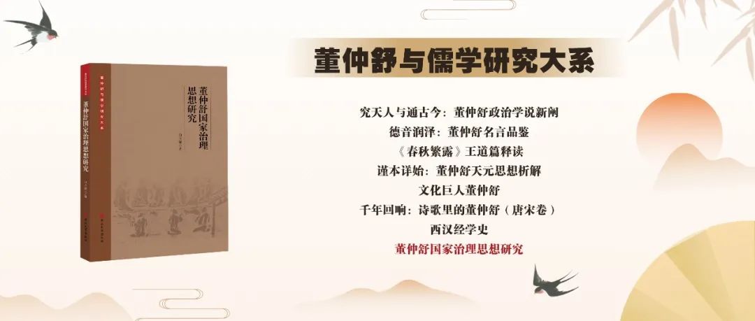 “董仲舒与儒学研究大系”包含图书《究天人与通古今:蕫仲舒政治学说新阐》《德音润泽:董仲舒名言品鉴》《〈春秋繁露〉王道篇释读》《谨本详始:董仲舒天元思想析解》《文化巨人董仲舒》《千年回响:诗歌里的董仲舒(唐宋卷)》《西汉经学史》《董仲舒国家治理思想研究》等。