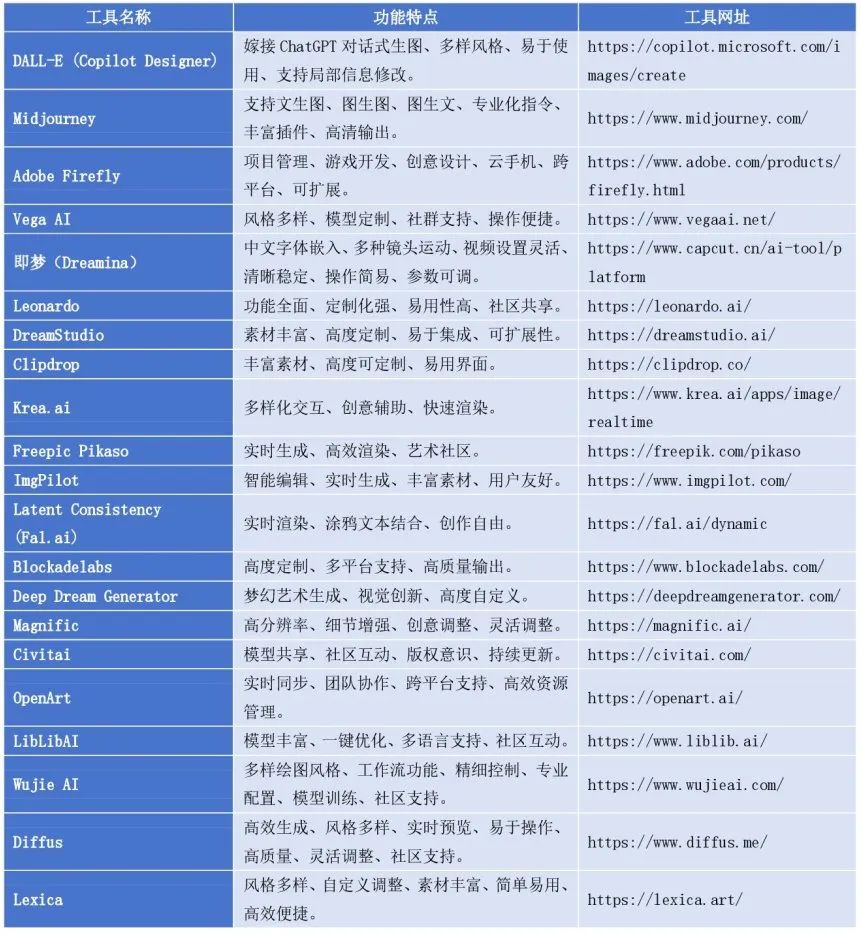 表5 常用在线AI绘图工具示例(具体见书P112)
