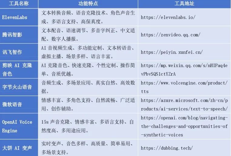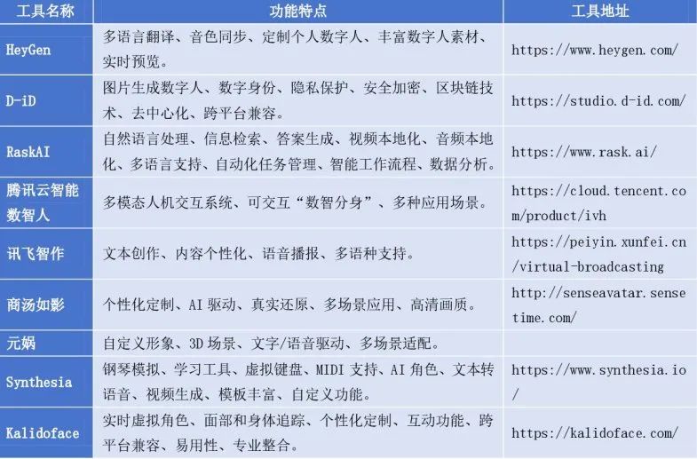 表10 虚拟数字人制作工具示例(具体见书P266)