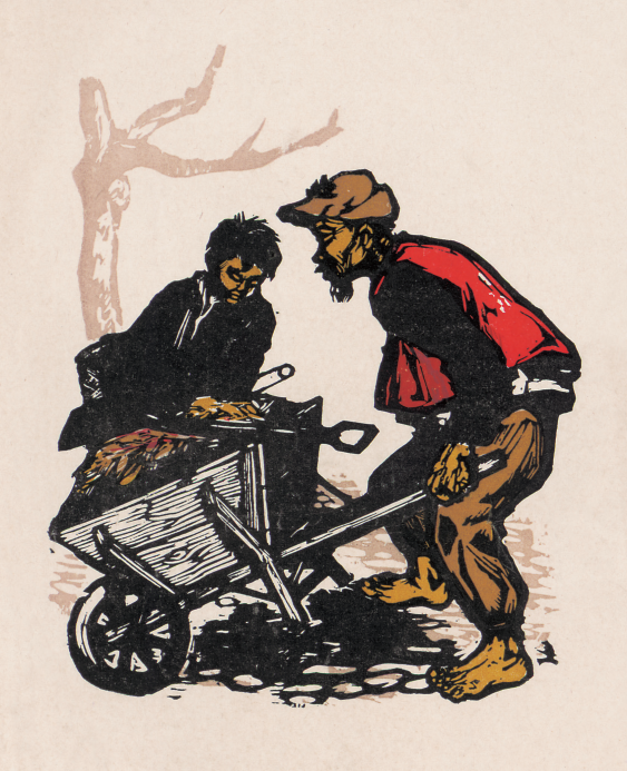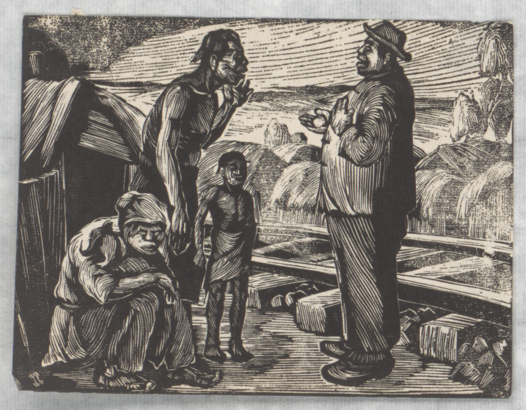 该版画于1936年随“第二回全国木刻流动展览会”在各地巡展。1936年初秋,在杭州展出时,给当时的失学青年、后来的著名版画家杨可扬留下了极深的印象。