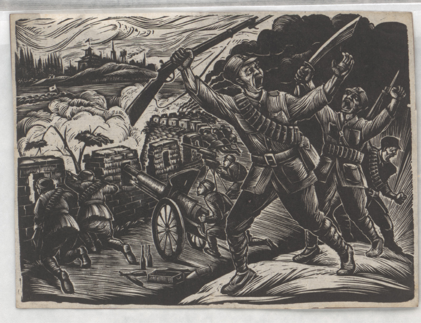 李桦创作的长篇木刻连环画,描绘了1932年一·二八淞沪抗战期间被日本侵略者害得家破人亡的阿毛、王才、胡大哥等上海难民背负着国仇家恨,逐渐觉醒并参加义勇军,最终光荣牺牲在抗日战场上的英雄事迹。