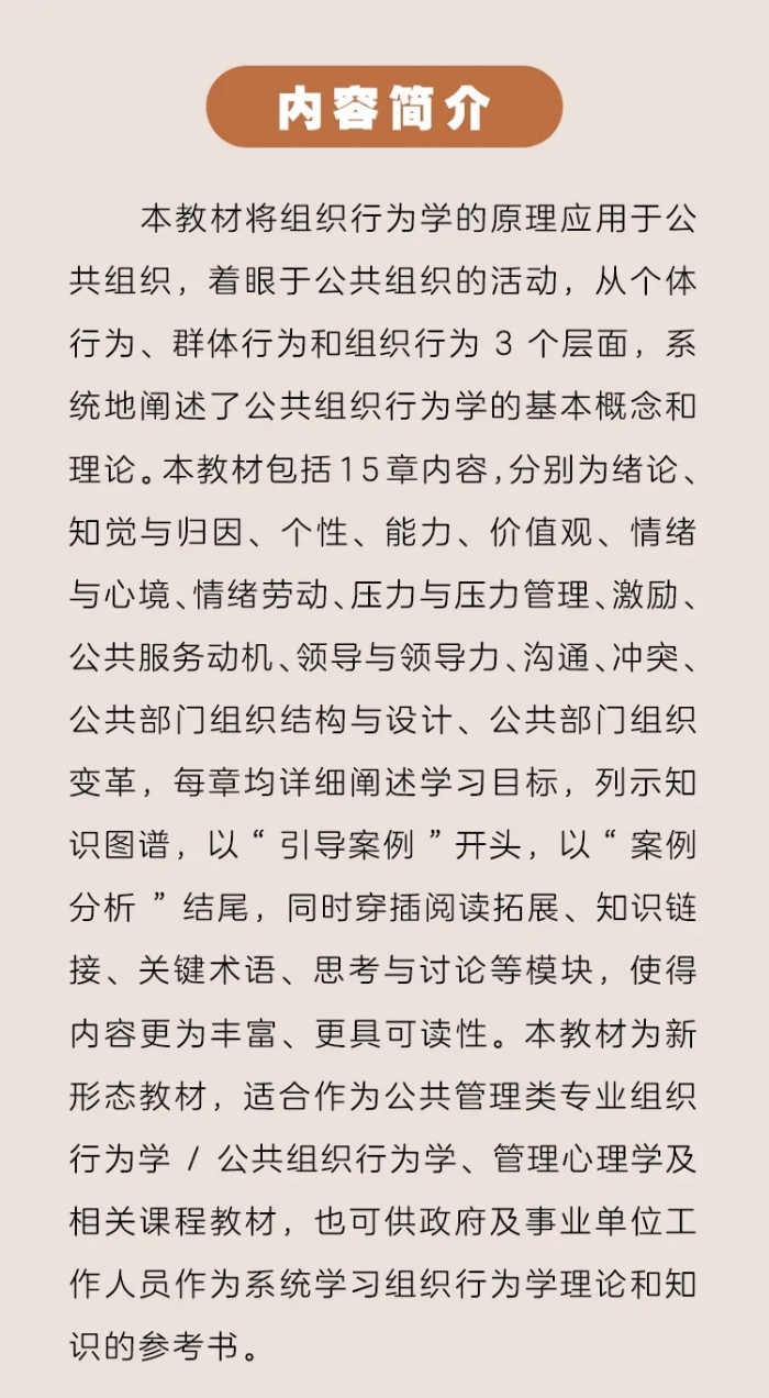 厦门大学出版社推荐《公共组织行为学》 - 推荐教材 - 中国高校教材图书网