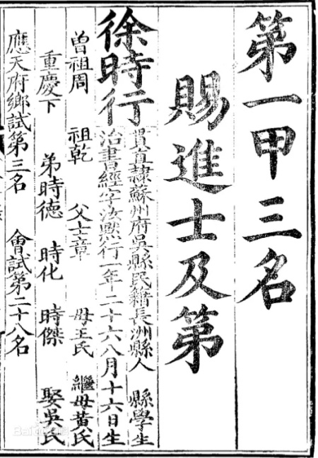 申时行(徐时行)状元榜