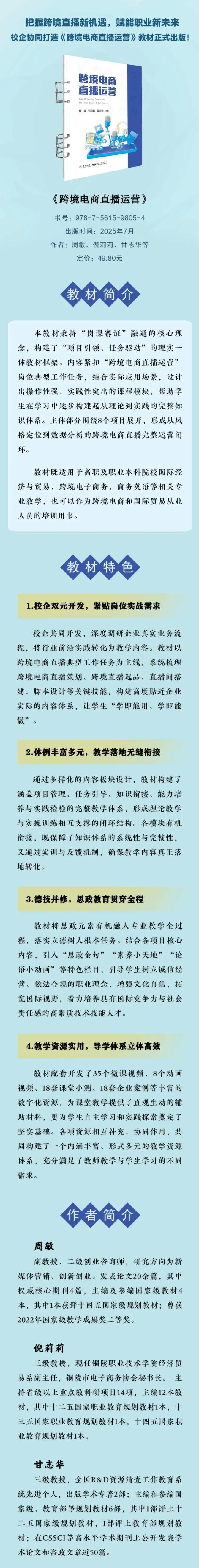 把握跨境直播新机遇,赋能职业新未来——校企协同打造《跨境电商直播运营》教材正式出版(厦门大学出版社) - 推荐教材 - 中国高校教材图书网