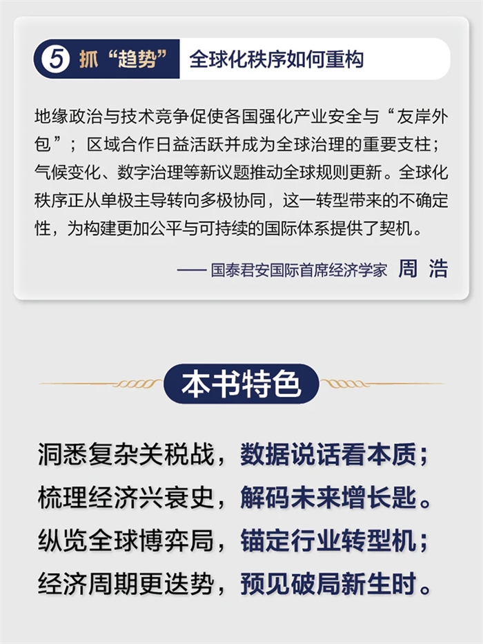 依托中国首席经济学家论坛这一高端智库平台,多位来自银行、证券、投行等金融机构的一线首席经济学家联合撰写,从宏观经济、国际金融、产业结构与地缘政治等多重维度展开分析,数据翔实、论证严谨,兼具专业深度与现实洞察。