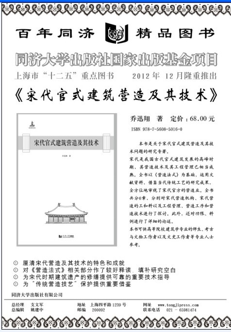 同济大学出版社国家基金资助项目:宋代官式建筑营造及其技术 - 专家推荐 - 中国高校教材图书网