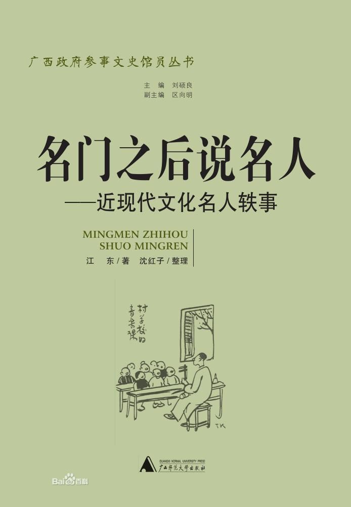 《名门之后说名人》 作者简介 作者:江东 出版社:广西师范大学出版社 出版日期:2013年1月 页数:242 定价:39.00元 装帧:平装 ISBN9787549533558 内容简介 本书收入文章为江东遗文,写于上世纪九十年代中期前,均为文史资料,记叙了数十位中国近现代文化人求学治学的人生轶事,包括陈独秀、胡适、马一浮、李石曾、夏丏尊、沈尹默、丰子恺、张大千、徐悲鸿等人,既有亲历观感,也有读史体会,用词精简,文笔老到,将作者熟知的近代轶闻娓娓道来。书中配有大量与文字相关的名人书画,文图结合,相映成趣,对诗、书、画、印均点评独到,显示出作者深厚的文学艺术修养。 来源:广西师范大学出版社