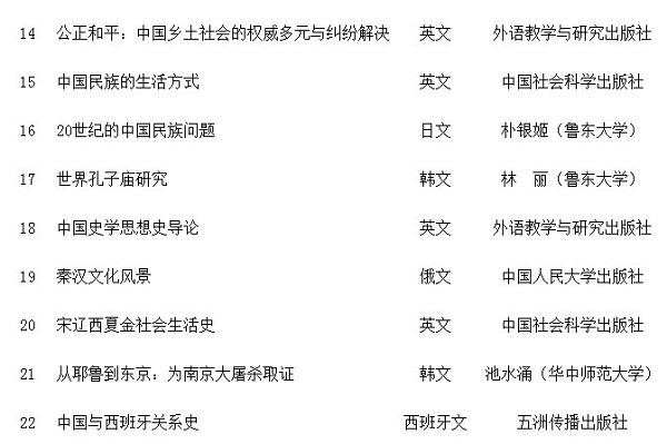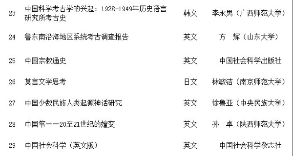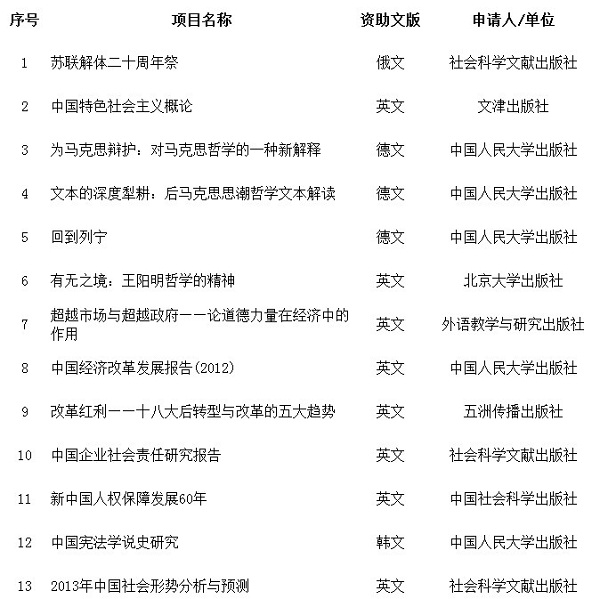 2013年国家社科基金中华学术外译项目立项名单(第一批)