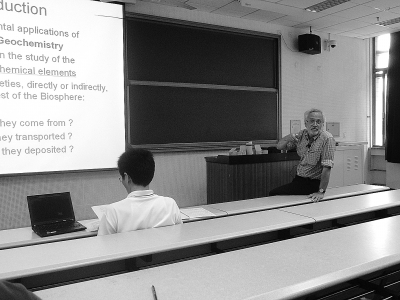 北京化工大学克里斯蒂安·皮恩教授在讲授化工前沿课程——能源和环境。吴卫泽 摄