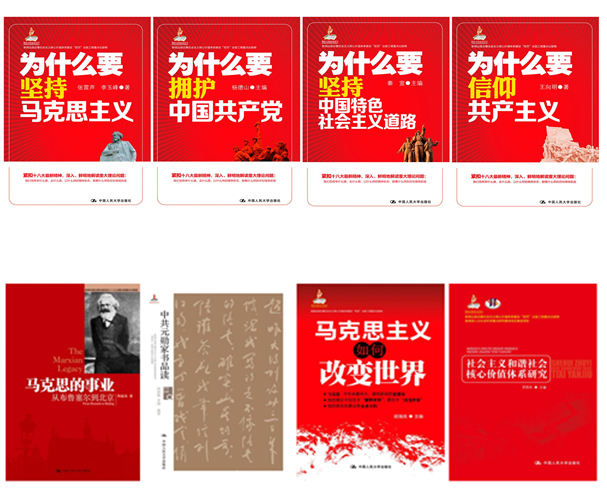 近日,中国人民大学出版社收到国家出版基金办通知,《马克思的事业:从布鲁塞尔到北京》、《中国革命道德》、《社会主义和谐社会核心价值体系研究》、《中共元勋家书品读(历史回眸)》、《马克思如何改变世界》、《为什么要信仰共产主义(社会主义核心价值体系大众读本系列》、《为什么要坚持中国特色社会主义道路》、《为什么要坚持马克思主义(新闻出版总署社会主义核心价值体系建设“双百”出版工程重点出版物;国家出版基金项目)》、《为什么要拥护中国共产党(新闻出版总署社会主义核心价值体系建设“双百”出版工程重点出版物;国家出版基金项目)》9个图书项目顺利结项。2012年中旬,中国人民大学出版社《马克思的事业:从布鲁塞尔到北京》一书入选“新闻出版总署迎接党的十八大主题出版重点出版物”,《中国革命道德》、《社会主义和谐社会核心价值体系研究》等8种选题入选“社会主义核心价值体系建设‘双百’出版工程首批重点选题”。同年这些选题获得国家出版基金资助,并陆续在十八大召开前后出版,这些读物紧贴十八大精神,针对当前党政干部与群众关心的一系列问题进行了科学解读,同时行文简明流畅,是不可多得的优秀理论读物。