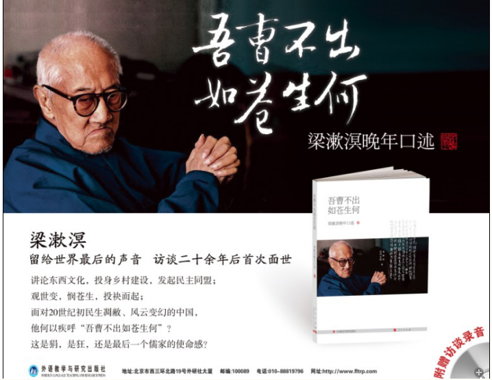 1917年10月,梁漱溟自长沙回北京途中,见军阀交战、民不聊生,遂写就《吾曹不出如苍生何》长文,并印册分送。梁先生每见民生困厄,“此心如饮苦药”,遂“投袂而起,誓为天下生灵拔济此厄”。有鉴于此,梁先生呼吁民众自水深火热中奋起: