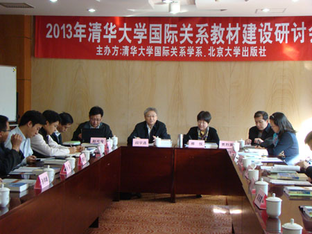 2013年10月20日,由清华大学国际关系学系和北京大学出版社联合举办的“2013年清华大学国际关系教材建设研讨会”在清华大学甲所召开,来自清华大学、北京大学、北京师范大学、北京语言大学、中央财经大学、对外经济贸易大学、武汉大学、中南财经政法大学等三十多所院校的老师参加了此次研讨会。