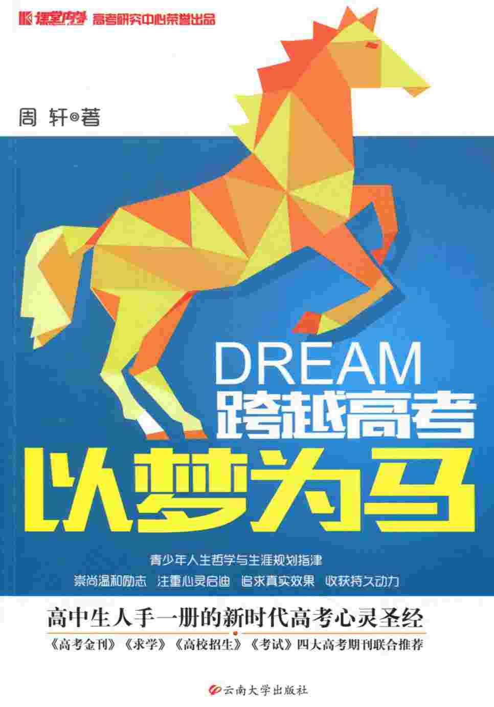 书名: 跨越高考 以梦为马 ISBN: 978-7-5482-1964-4 作者: 周轩 相关图书 印次: 1-1 开本: 16开 定价: ¥18.00 出版社: 云南大学出版社 出版日期: 2014-07-01 内容简介: 本书是针对即将高考的学生和刚迈入大学的同学指导其人生规划的书籍。全书分为九章,分别从好习惯的养成、意志塑造、专业选择、职业规划等几方面介绍。语言平实,并结合作何自身经验等,有助于青年吸收和接纳。对青少年学生的成长有一定指导意义 。 作者简介: 何林衡,《高考金刊》主编,国家二级心理咨询师。张放天,北京市社会科学院应用心理学研究中心特聘研究员、国家高级职业指导师。 来源:云南大学出版社