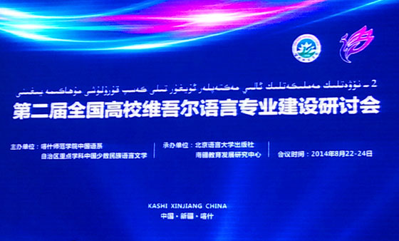 近日,由自治区重点学科(中国少数民族语言文学)、喀什师范学院中国语系主办,北京语言大学出版社和南疆教育发展中心承办的第二届全国高校维吾尔语言专业建设研讨会在喀什地区召开。来自全国20所高校的50名代表、喀什师范学院语言学院维吾尔语专业全体教师及部分研究生代表参加了研讨会。北京语言大学张旺熹教授、崔健教授、北京语言大学出版社编辑潘虎应邀参加了会议。