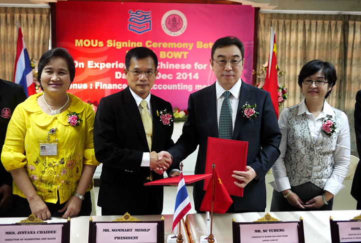 继“体验汉语”中小学系列项目落户泰国,被泰国教育部列入泰国教育部推荐教材,进入泰国国民教育体系,高等教育出版社与泰国教育部门和出版机构的合作进一步深化,双方合作开发的泰国职业教育汉语教学资源,将成为泰国职业教育领域开展汉语教学的核心资源。日前,高等教育出版社与泰国BOWT出版社正式签订“泰国职业教育汉语教学资源合作出版”协议,并与泰国教育部门合作,在有着百年历史的泰国名校——普吉女子中学建立全球首家“体验汉语教学示范基地”。 2014年12月8日至12日,高等教育出版社社长苏雨恒一行赴泰国,与泰国BOWT出版社签订“泰国职业教育汉语教学资源合作出版”协议,与泰国普吉女子中学签署“关于建立汉语教学示范基地的合作备忘录”,为泰国“体验汉语教学示范基地”揭牌,与泰国教育部国际合作司、基础教育委员会、职业教育委员会就泰国汉语教学发展和中泰教育教学资源建设合作事宜进行商谈。这标志着中国出版企业全面深入、多领域进入泰国国民教育体系,并通过建立“教学示范基地”等形式在泰国国内实现落地生根。 高教社与泰国BOWT出版社签署“泰国职业教育汉语教学资源合作出版协议” 苏雨恒社长为普吉女子中学“体验汉语教学示范基地”揭牌 泰国教育部高度重视与高等教育出版社的合作,泰国教育部次长素塔席博士(Dr. Suthasri Wongsamarn)会见苏雨恒社长一行,她希望双方的合作在已有基础上进一步深化和拓展,在教师培训、数字化教学资源建设以及职业教育的学科专业建设等方面不断推进。泰国教育部国际合作司秘书长,职业教育委员会秘书长、分管副秘书长、基础教育委员会秘书长助理,分别与苏雨恒社长一行亲切会谈。泰国当地政府也十分关注有关活动,普吉女中所在地泰国宋卡府副府尹、普吉市副市长等官员出席“关于建立汉语教学示范基地的合作备忘录”签字仪式和普吉女子中学“体验汉语教学示范基地”揭牌仪式。泰国主流媒体对苏雨恒社长一行访问和相关活动予以高度关注,泰国国家电视台五频道等对上述活动进行了报道。 中国驻宋卡总领事馆驻普吉领事办公室汪惠娟副总领事出席“关于建立汉语教学示范基地的合作备忘录”签字仪式和普吉女子中学“体验汉语教学示范基地”揭牌仪式并致辞,对高教社为中泰两国教育文化交流与合作作出的贡献予以高度评价,表示将全力支持高教社与普吉女子中学的合作项目。 泰国教育部次长Dr. Suthasri Wongsamarn会见苏雨恒社长 自上世纪80年代起,高教社就迈出了国际交流的步伐。经过30余年的努力,已与包括众多知名出版商在内的200多家合作伙伴开展了合作,24个语种版本的多种国际型产品行销世界60个国家和地区,版权输出数量在全国单体出版社中连年名列前茅,是国内唯一获得“世界知识产权组织创意金奖——单位奖”的出版机构。2010 年,在中泰两国教育部、孔子学院总部、中国驻泰国大使馆、曼谷教育厅的积极推动下,高教社《体验汉语中小学系列项目》正式列入《泰国教育部推荐教材目录》,标志着中国编写的对外汉语教材首次大规模进入国外主流教育体系,是一次历史性的突破,同时也是我国文化走出去和汉语国际推广事业中的一项创举和重要里程碑。现在,《体验汉语中小学系列项目》在泰国已累计销售逾200万册,共有1288所中小学使用此套教材。泰国前任副总理蓬贴·帖甘扎纳及历任泰国教育部长相继访问高教社,对高教社“泰国项目”给予高度评价和大力支持。 目前,高教社正在全球领域积极探索和践行一套国际合作、本地定制、创新理念和技术融合的崭新模式,努力为汉语国际传播和中国出版“走出去”战略的实施,为进一步发挥中国文化影响力、竞争力,贡献出版企业的力量。 来源:高等教育出版社
