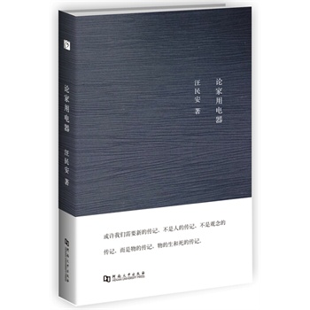 《论家用电器》汪民安著/河南大学出版社2015年3月版/38.00元 ISBN: 9787564917067 内容推荐 《论家用电器》是首都师范大学汪民安教授的一部文化理论的随笔集。本文将家用电器作为传记的对象,探讨了洗衣机、电冰箱、手机、电视机等电器在家庭生活中所展现的空间权力结构。作者以法国思想随笔的文章风格,运用娴熟的理论工具,层层解剖,既充满了洞见,也糅合了作者的当下生活感受与情怀,使读者获得极大的阅读乐趣。