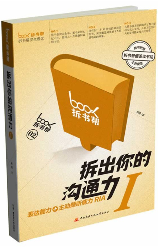 不破不能立,不拆不成器——拆书帮,把知识拆成你的能力!2013到2014年,“拆书帮”在微博微信上火了,“拆书帮俱乐部”在北京、上海、深圳、南京也火了。一群热爱学习的职场年轻人,如饥似渴地用着拆书帮读书法把书本上的知识拆解成自己的职场能力。快快加入他们吧,和全国各地的小伙伴儿们一起,从“沟通力”的提升开始,一步一步打造自己的职场成功之路。