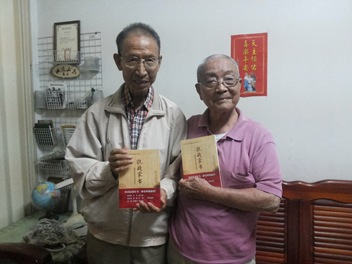随团访问的校博物馆家书研究中心主任,也是这两本家书的主编张丁老师,还向旅居台南的抗战老兵张天保、姚云龙先生分别赠送了《抗战家书》,两位抗战前辈均已九旬高龄,非常高兴地接受了赠书,并介绍了自己的抗战经历。