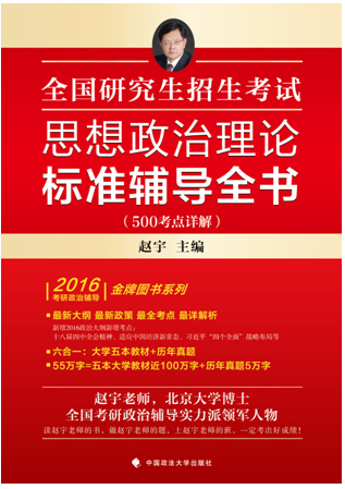 全国研究生招生考试思想政治理论标准辅导全书:500考点详解 ISBN:978-7-5620-6074-1 作者:赵宇 主编 定价:45.80元 出版日期:2015-06 版次:1-1 开本:16 页数:415 字数:710千字 装订:平装 中国政法大学出版社 图书简介: 考点明确、重点突出、层次清晰、详略得当,结合最新政治动态和相关时政,将理论知识和现实结合起来,便于考生全面理解考试内容,可让考生在短时间内掌握关于考研政治的全部考点,吸收大量知识信息,快速达到复习效果,对于参加研究生考试的考生来说,是复习备考政治这门学科的重要资料。 来源:中国政法大学出版社