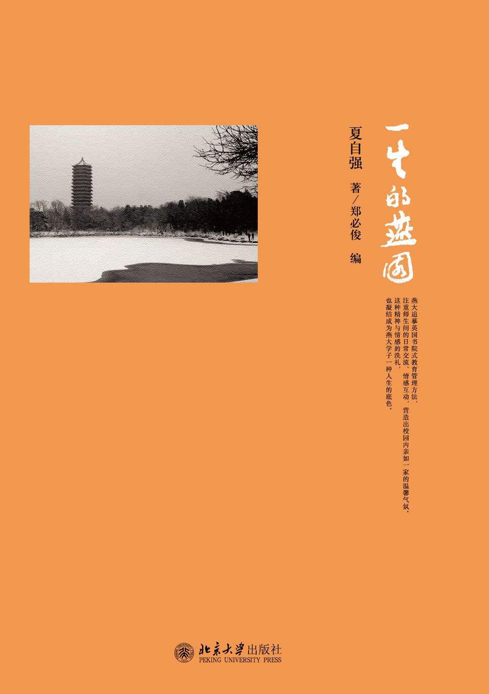 本书是夏自强的散文随笔集。燕园伴随了作者的一生,也见证了作者的一生,“一生的燕园”成为他对燕园最本真的情感表述。 内容简介: 燕京大学从1919年创立到1952年并入北京大学,存世时间不过短短的三十三年,但却人才济济,先后培养了50位两院院士,一大批享誉海内外的优秀人才。 燕大追摹英国书院式教育管理方法,注重师生间的日常交流、情感互动,营造出校园内亲如一家的温馨气氛。这种精神与情感的洗礼,也凝结成为燕大学子一种人生的底色。 本书是夏自强先生的散文随笔集,内容分为四辑:第一辑围绕燕大的历史展开;第二辑是燕大人物志;第三辑论说、忆述燕大师生;第四辑则述及1949年转折期的燕大往事。 燕园伴随了作者的一生,也见证了作者的一生,"一生的燕园"成为夏自强先生对燕园最本真的情感表述。 作者简介: 夏自强,安徽和县人,1929年10月出生。1947年进入燕京大学历史系学习,在校期间曾任火炬社社长、学生会主席,1951年毕业留校任教;1951年院系调整。转入北京大学工作,历任历史系讲师、副教授,曾任北京大学历史系副系主任、社会科学处处长、副教务长;1982年后,调任国家教育委员会(后改称教育部)高等教育一司司长、国家古籍整理出版规划小组成员、全国高校古籍整理研究工作委员会副主任,教育部研究员。1994年离休后担任燕京大学北京校友会常务副会长、燕京研究院副院长,新《燕京学报》编委。 来源:北京大学出版社