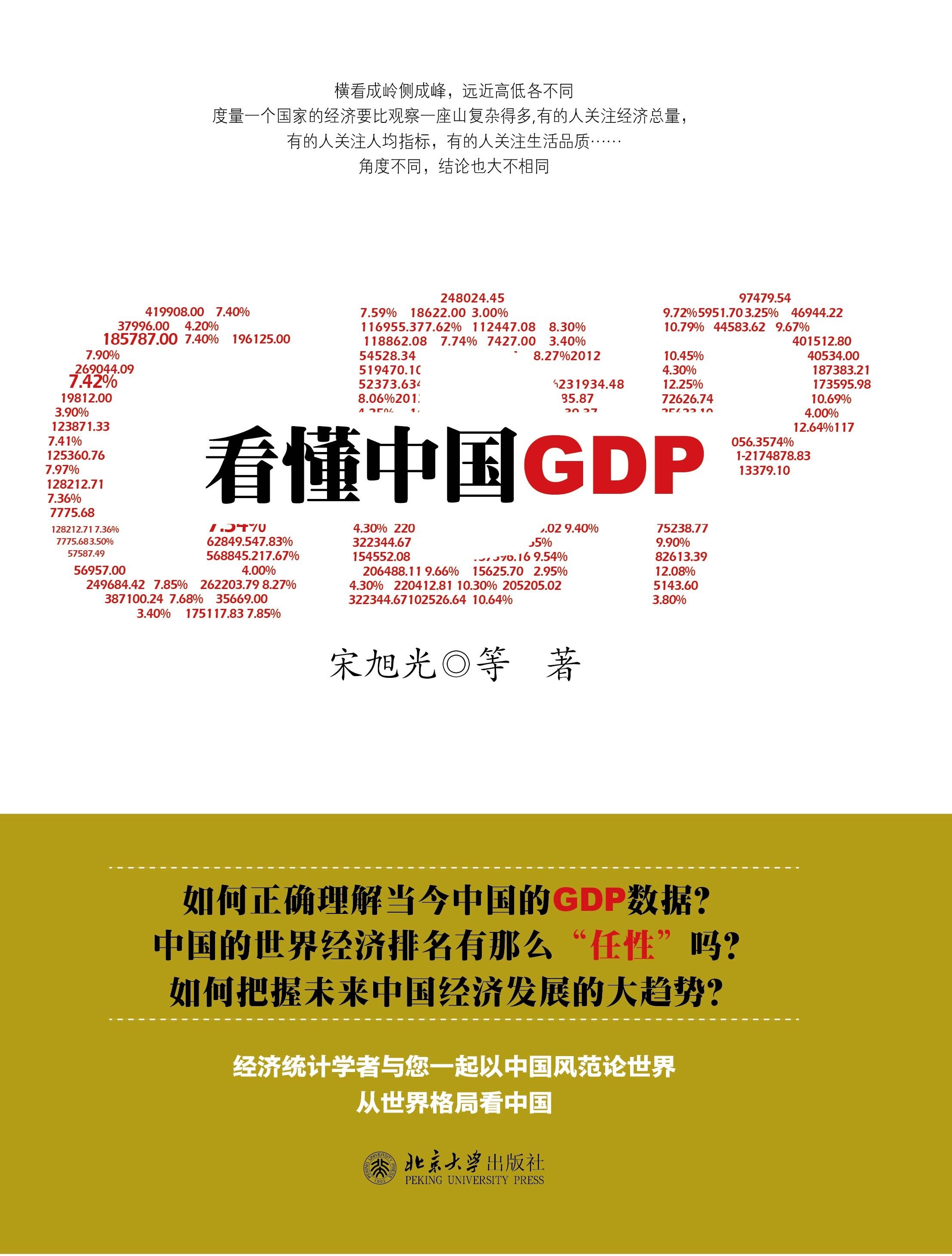 所以说,要想真正了解中国的经济地位,就不能只看公布出来的GDP数字(不管发布机构有多权威),还要能看懂数字背后的故事。北京师范大学宋旭光教授及其团队所著的《看懂中国GDP》一书可能会在此方面有所帮助,书中不仅对GDP这一老百姓耳熟能详的指标进行了细致而深入的“解剖”,并且澄清了很多原本似是而非的误解,回答了很多似懂非懂的疑问。