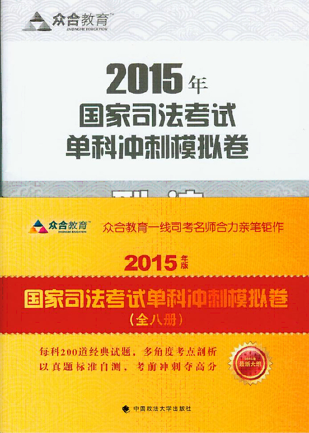 2015年国家司法考试单科冲刺模拟卷(共8册) ISBN:978-7-5620-6037-6 作者:众合教育 编 定价:78.00元 出版日期:2015-04 版次:1-1 开本:16 页数:共8册 字数:1190千字 装订:平装 读者对象:读者对象主要为2015年参加司法考试的考生。