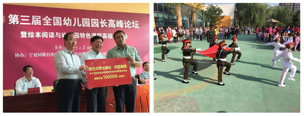 本次论坛的主题是“绘本阅读与幼儿园特色课程”,旨在促进绘本阅读与教学以及幼儿园特色课程建设,进一步提高幼儿教师使用绘本进行教学的能力。在开幕式上,银川市副市长钱秀梅、宁夏回族自治区教育厅基础教育处处长张可生先后讲话,深刻解读了学前教育的重要性,剖析阅读对人一生发展的深远影响。复旦大学出版社向宁夏回族自治区教育学会捐赠了价值十万元的幼儿图书。开幕式后,与会代表现场观摩了银川市第一幼儿园的“小小国旗护卫队”特色活动。