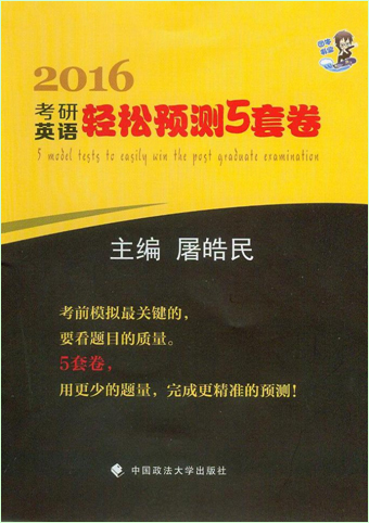 书名:考研英语轻松预测5套卷(订购) ISBN:978-7-5620-6318-6 作者:屠皓民 主编 定价:19.80元 出版日期:2015-09 版次:1-1 开本:16 字数:252千字 装订:平装 出版社:中国政法大学出版社 读者对象:读者对象主要为2016年参加研究生入学考试的考生。