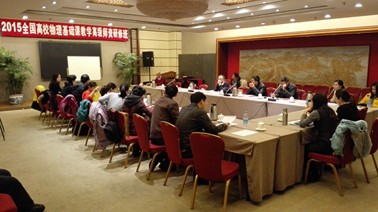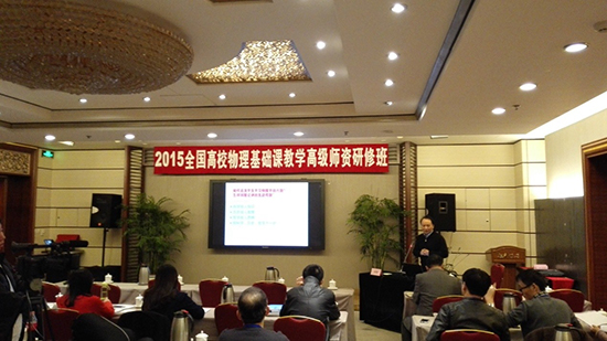 最后的报告由北京大学物理学院的另一位全国教学名师,原北京大学物理学院普通物理教学中心主任王稼军教授给出。王老师把多年的教学经验凝结在这次授课中,对电磁学的传统教学以及新颖的慕课(MOOC)教学方式都进行了介绍。王老师的讲解激情四射,听课的老师包括工作人员都听得非常入神。虽然是下午最容易发困的时候,但听课的老师没有人表现出困倦的感觉。课后,各位老师都对王老师的讲课评价很高。 这次研修班时间紧凑,内容充实,针对性强。虽然是周末,即便是从外地抽时间赶来的老师们都鲜有缺课的,反映了这次课程设置的成功。与会老师纷纷表示,参与这次会议对自己的教学和科研工作帮助很大,并对下一次研修班的举办充满期待。