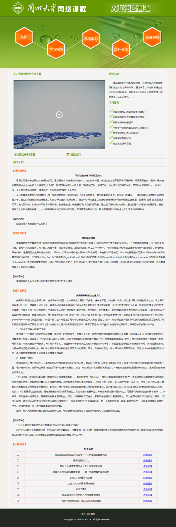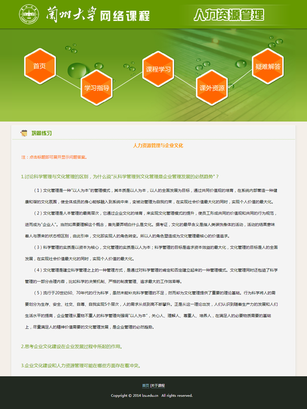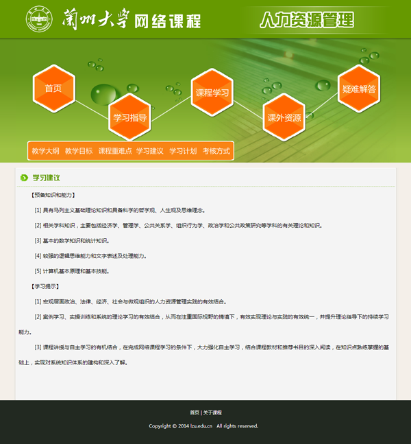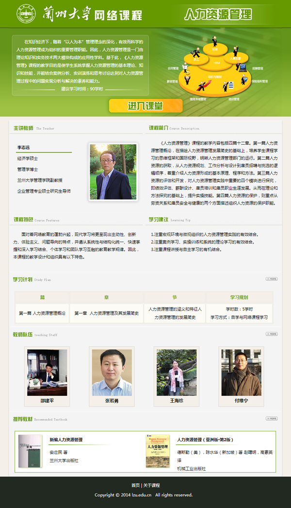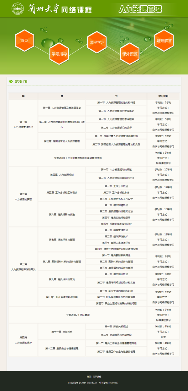 由兰州社数字出版中心开发的网络课程《人力资源管理》已经投入教学了,现将该课程的部分章节予以展示。