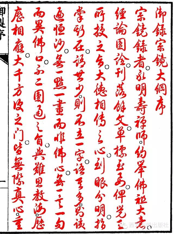 《宗镜录》为古代皇室资助编纂的大型佛教权威图书,有“小藏经”的美誉。看完长达100卷的《宗镜录》,几乎可以不必看佛书矣。《宗镜录》既没有普通顿悟南禅“口头狂禅”的浅薄,也富含达者游刃有余出入经藏内外的极度高妙洒脱。难怪贵为帝王大彻大悟的雍正(自号圆明居士)反复赞美《宗镜录》为“佛门第一书”!雍正尊称永明延寿为“古佛”也!