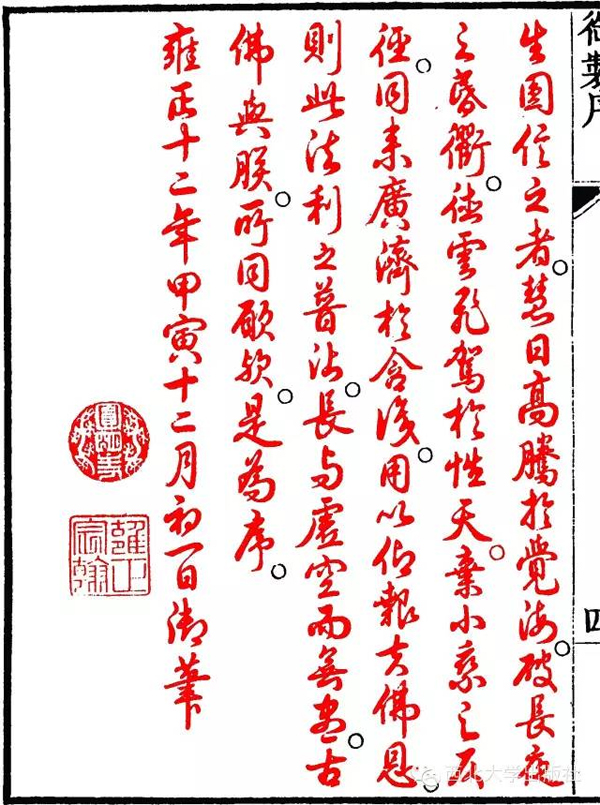 雍正亲撰并手书《御录宗镜大纲》序落款