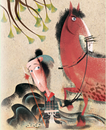 此时年迈的父母已经白发苍苍,他们听说女儿回来了,互相搀扶着到城外迎接她。弟弟聪儿也已长大成人,他听说姐姐回来了,忙着“霍霍”地磨刀杀猪宰羊。