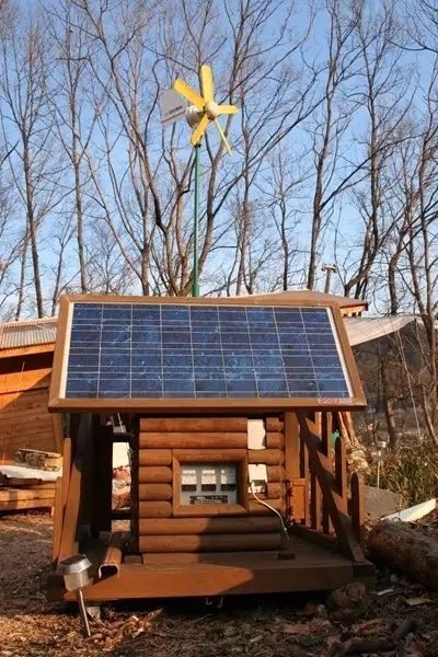 这是“爱· 地球博览会”中展示的内格罗斯电工制造的太阳能发电机,内建电池,只要接上电线就能使用。发电量虽小,但因为我家的用电量不高,且只用在照明部分,所以绰绰有余。有时在半夜会忽然没电,因此偶尔也必须切换成一般电源。