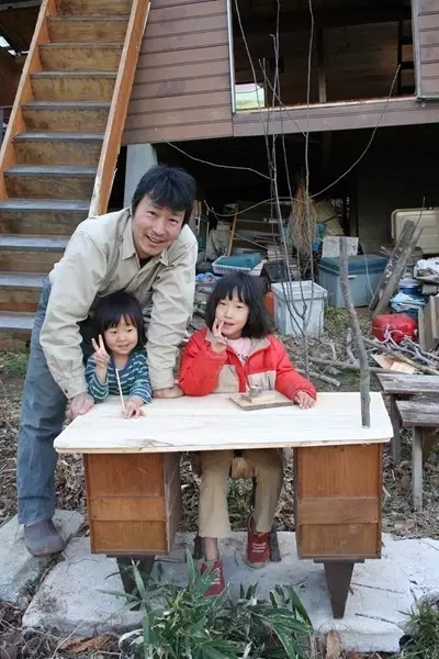 这张书桌是小阳上小学一年级时制作的,利用妈妈梳妆台的抽屉,再装上天然树木当作桌脚。小阳非常喜欢这张桌子,这让我很高兴。我就是这样不花费金钱,只利用现有的材料制作,来实践我的生活理念。