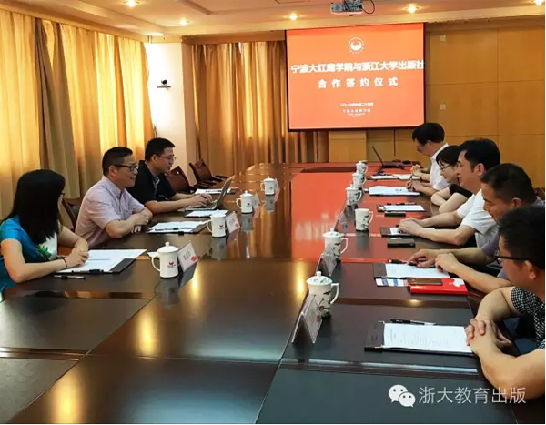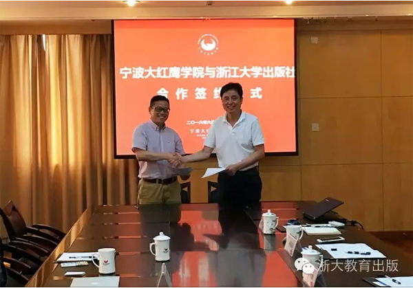 2016年6月23日上午,浙江大学出版社与宁波大红鹰学院出版合作签约仪式在该校行政楼会议室举行。浙江大学出版社社长鲁东明、副社长金更达以及教材出版中心常务副主任黄娟琴,宁波大红鹰学院党委书记孙惠敏、副校长李羽和校长助理高振强等学校主要领导出席此次合作签约仪式。双方就新形势下应用型本科教学模式的探索、“立方书”教材与数字化教学资源建设等将展开深入合作。