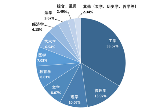2016年秋季教材可供品种的学科门类分布情况(见图表一)与前几年比变化不大,工学、管理学、理学的教材可供品种数依然稳居前三位,工学和管理学的可供品种数达到万条以上。其中,工学教材的可供品种占比为33.67%,这一数据与2015年秋季《教目》可供品种中的工学教材占比33.10%相比有小幅上升。