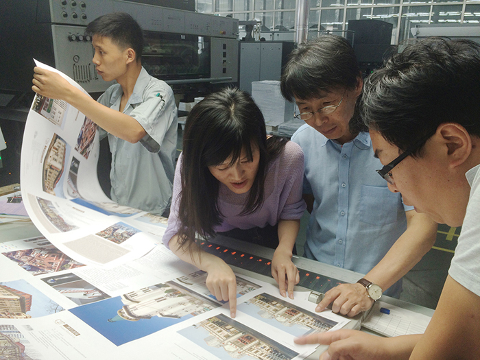 为了便于收藏,本书特别采用书匣的形式。封面设计几易其稿,力图更好地展示青岛建筑的欧陆风情。内文设计上也多次完善修改,力图让篇章页中的地图清晰明了,让简介中的文字简洁得当,让图注更加清晰明确,让图片更加赏心悦目、与正文相辅相成,让字体字号更加舒适。每篇文章下的简介词条旁,均附有该建筑的经典轮廓或局部的黑白线条,耐人寻味。不仅如此,本书在印制时,一遍遍地打样看效果,作者、编辑、美编一起赴印刷厂与工作人员一起一页页调整效果,最终呈现出饱和的色彩和明亮的色调。