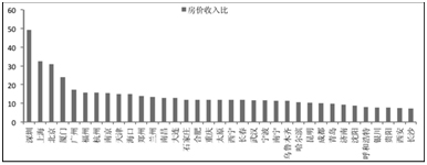 图4-1-16 部分城市房价收入比较高