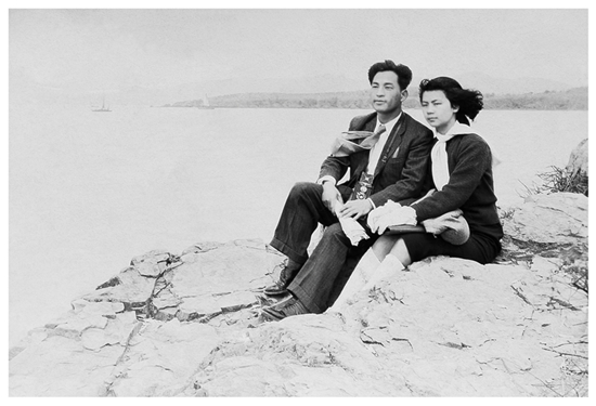 父亲(二十八岁《时事新报》记者)与母亲(二十岁,复旦中文系大二)在太湖留影,1947,年4月7日